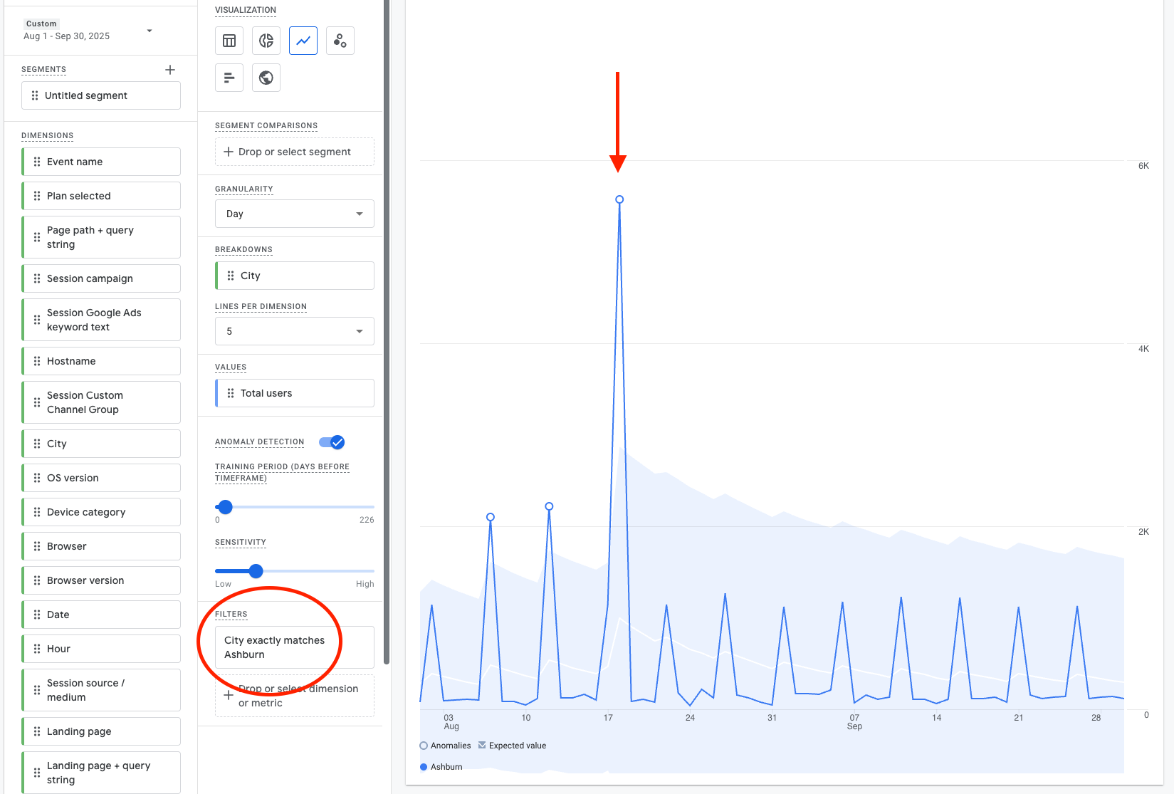 The best way to look into the dimensions below is to use the Explore feature in GA4, choose the affected date range and any other filters/segments to narrow the dataset down to what you believe to be affected.