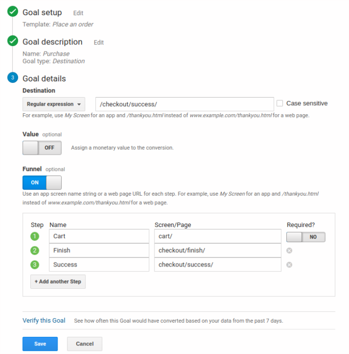 Purchase Goal in Google Analytics